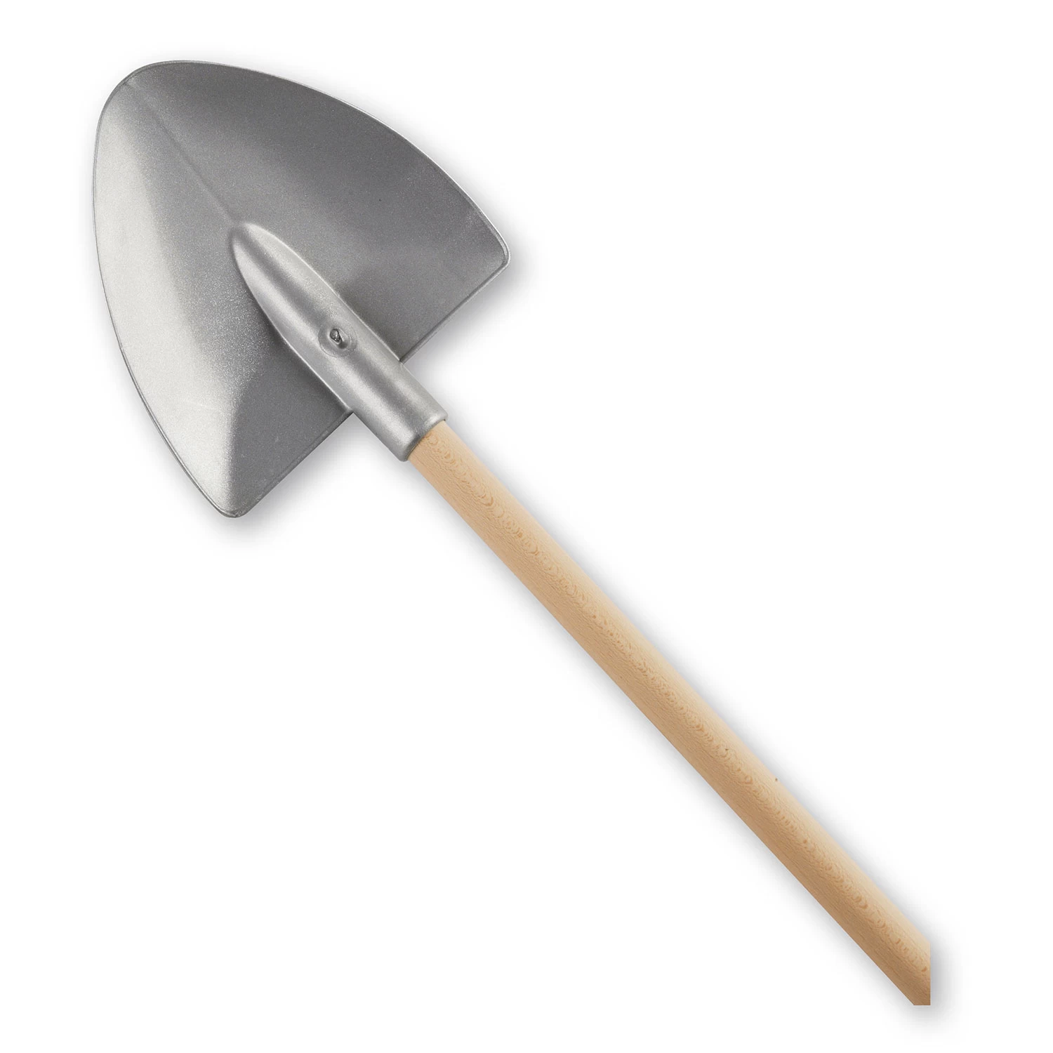 Bouw de mooiste zandkastelen met deze zilverkleurige schep. De schep is gemaakt van stevig kunststof en heeft een houten steel.
