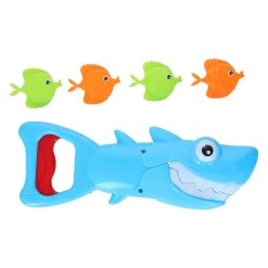 Badgraaier haai met 5 kleine visjes. Probeer alle visjes te vangen met de knijper.