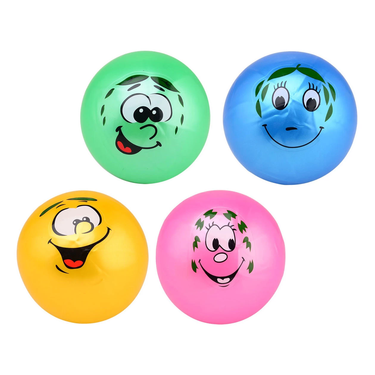 Vrolijk gekleurde bal met lachgezicht. Wordt niet opgeblazen geleverd.