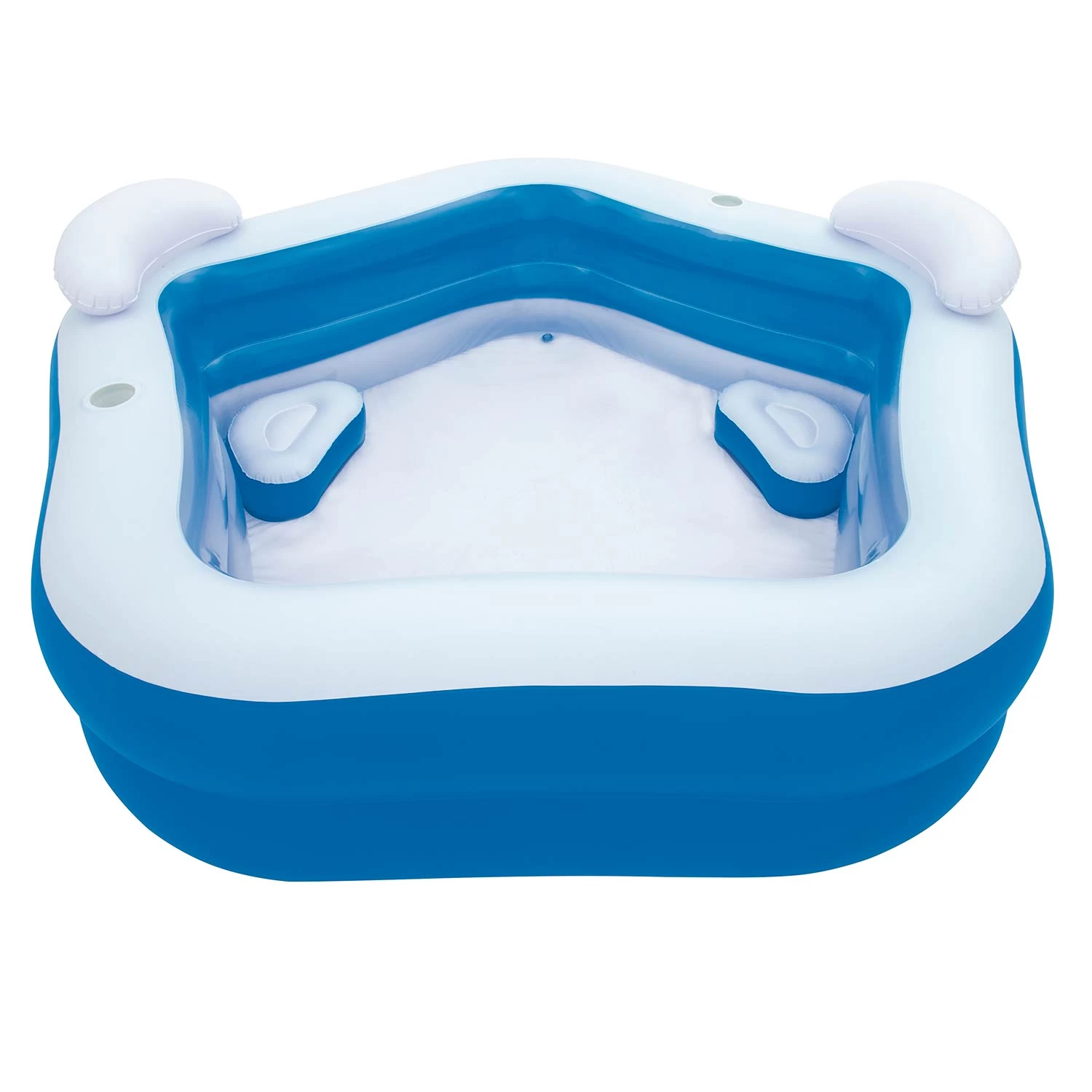 Neem met het hele gezin plaats in het Bestway Familiebad! Dit 3-rings opblaasbad heeft een vijfhoekige vorm en is 213x207x69 centimeter. Het blauwwitte Bestway Familiebad is voorzien van 2 rugsteunen, 2 fleshouders en gemaakt van stevig vinyl.