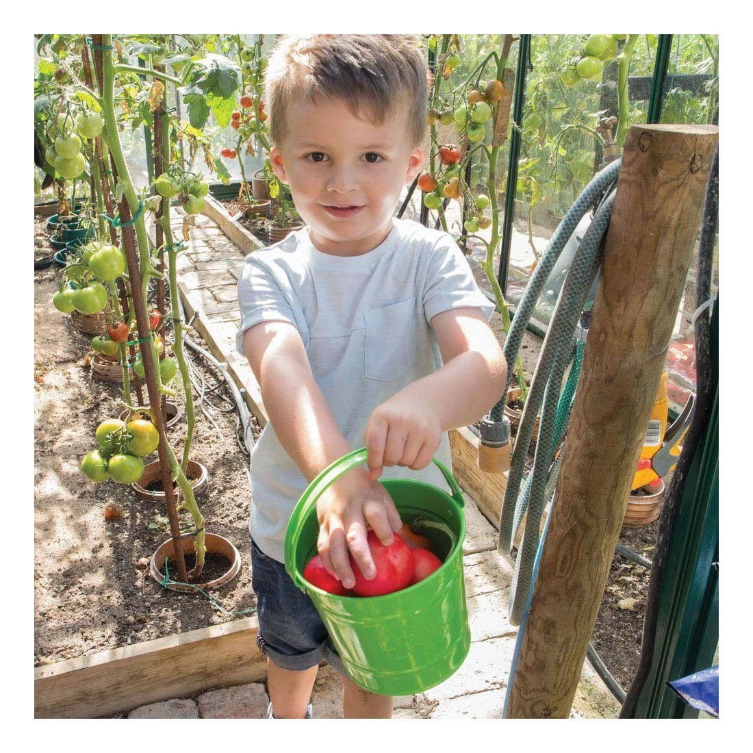 Met een sterke, stevige stalen constructie en een geklonken draaibare handgreep is deze groene emmer het ideale tuingereedschap. De beweegbare handgreep maakt het voor jonge tuiniers gemakkelijk om de emmer te vullen met verse groenten uit de tuin, of zelfs gewoon aarde! Een geweldige manier om kleintjes aan te moedigen om te helpen in de tuin en alles te leren over het plukken van groenten en fruit die ze zelf hebben verbouwd!