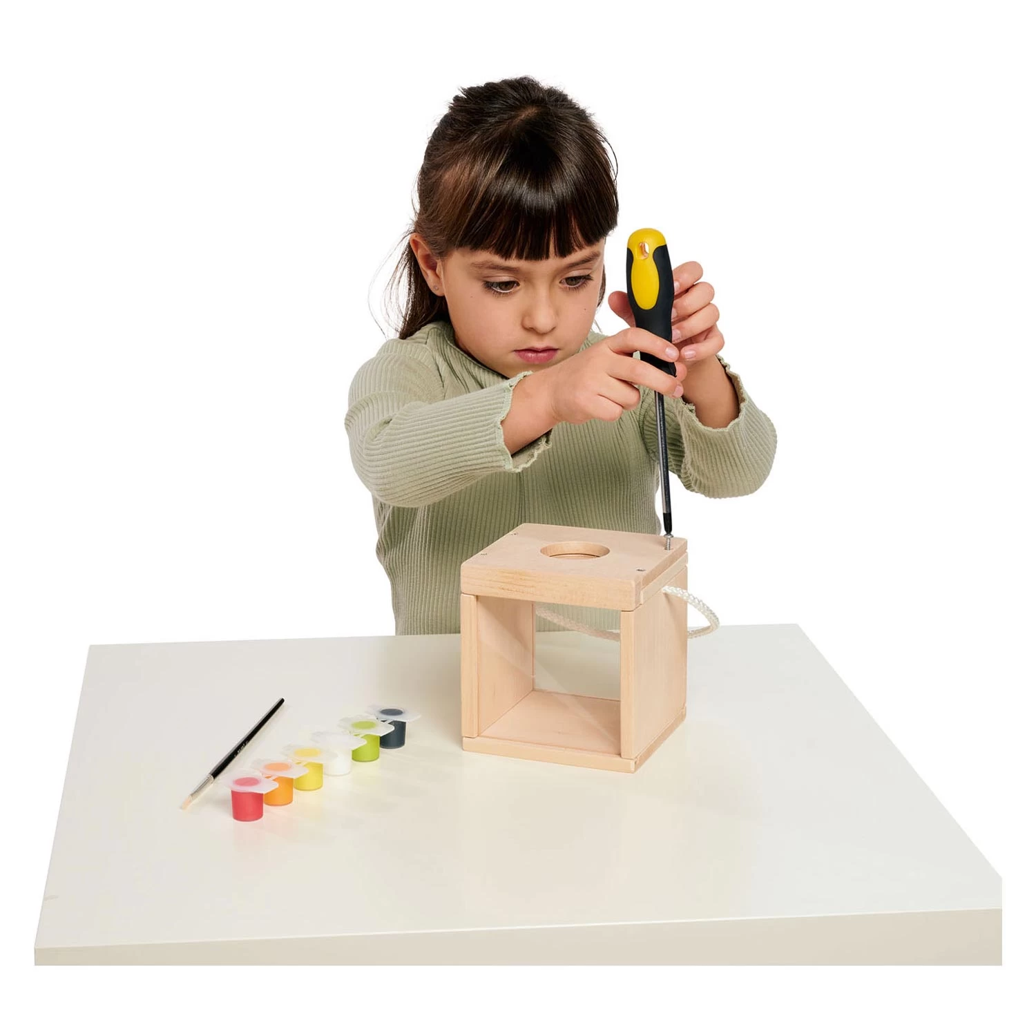 Deze insectenkijkdoos is gemaakt van mooi, stevig hout. Naast de 7 houten panelen van het doosje, zit er een verfset, montageset, koord en twee vergrootglazen bij. Het enige wat je zelf nog nodig hebt, is een schroevendraaier. Adviesleeftijd: vanaf 6 jaar.