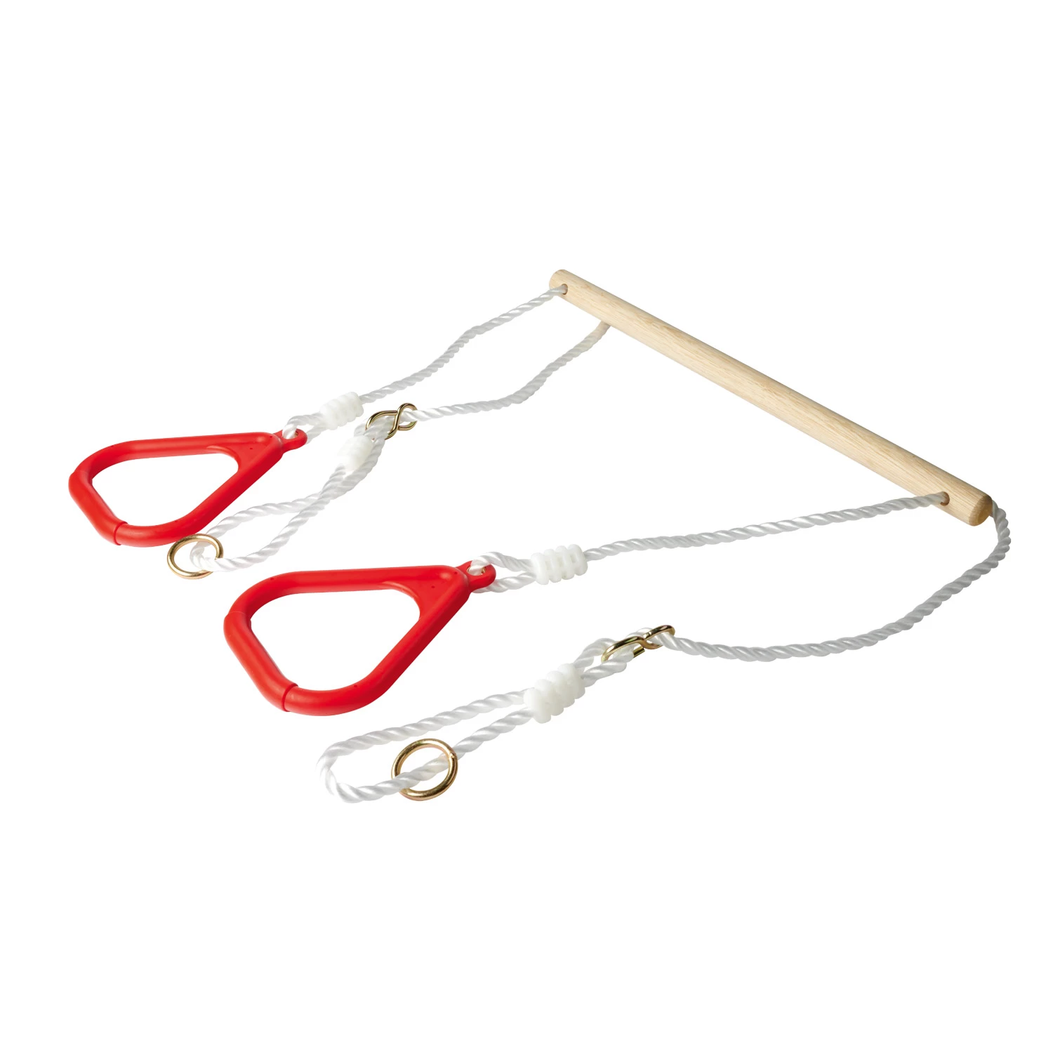 De houten trapeze is in hoogte verstelbaar van 110 cm tot 160 cm en heeft een maximale belastbaarheid van 60 kilogram. Geschikt voor kinderen vanaf 3 jaar oud.