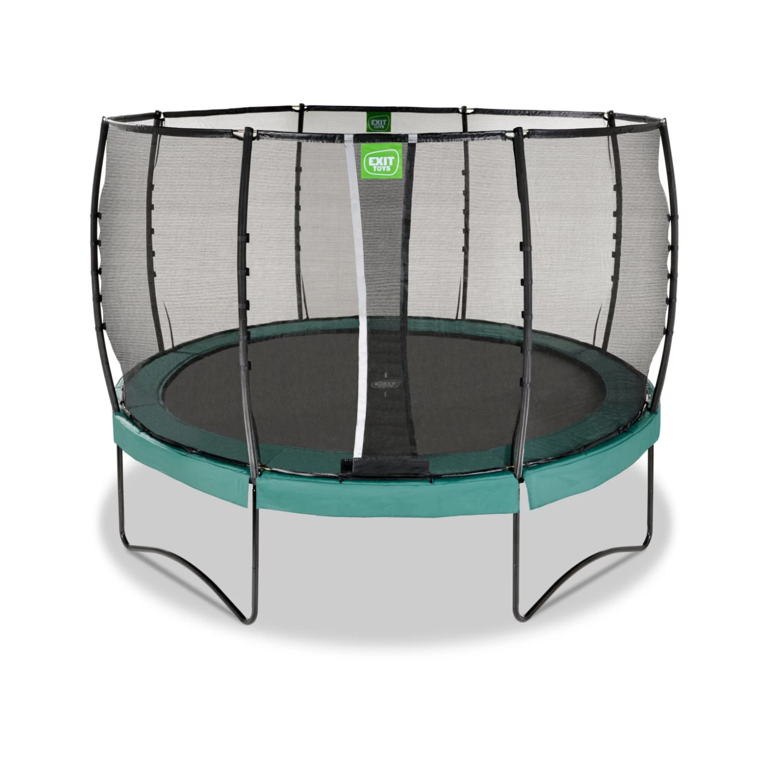 De EXIT Allure Premium trampoline is een trampoline met een beschermrand en een Premium veiligheidsnet. Dankzij het EXIT Foot Protection System (FPS), een net tussen het springdoek en de trampoline beschermrand, komen trampolinespringers nooit met hun voeten tussen de springveren. Het meegeleverde Premium veiligheidsnet heeft een overlappende ingang die automatisch sluit. Ook zijn de palen van het Premium veiligheidsnet bedekt met hoogwaardig XPE schuim.