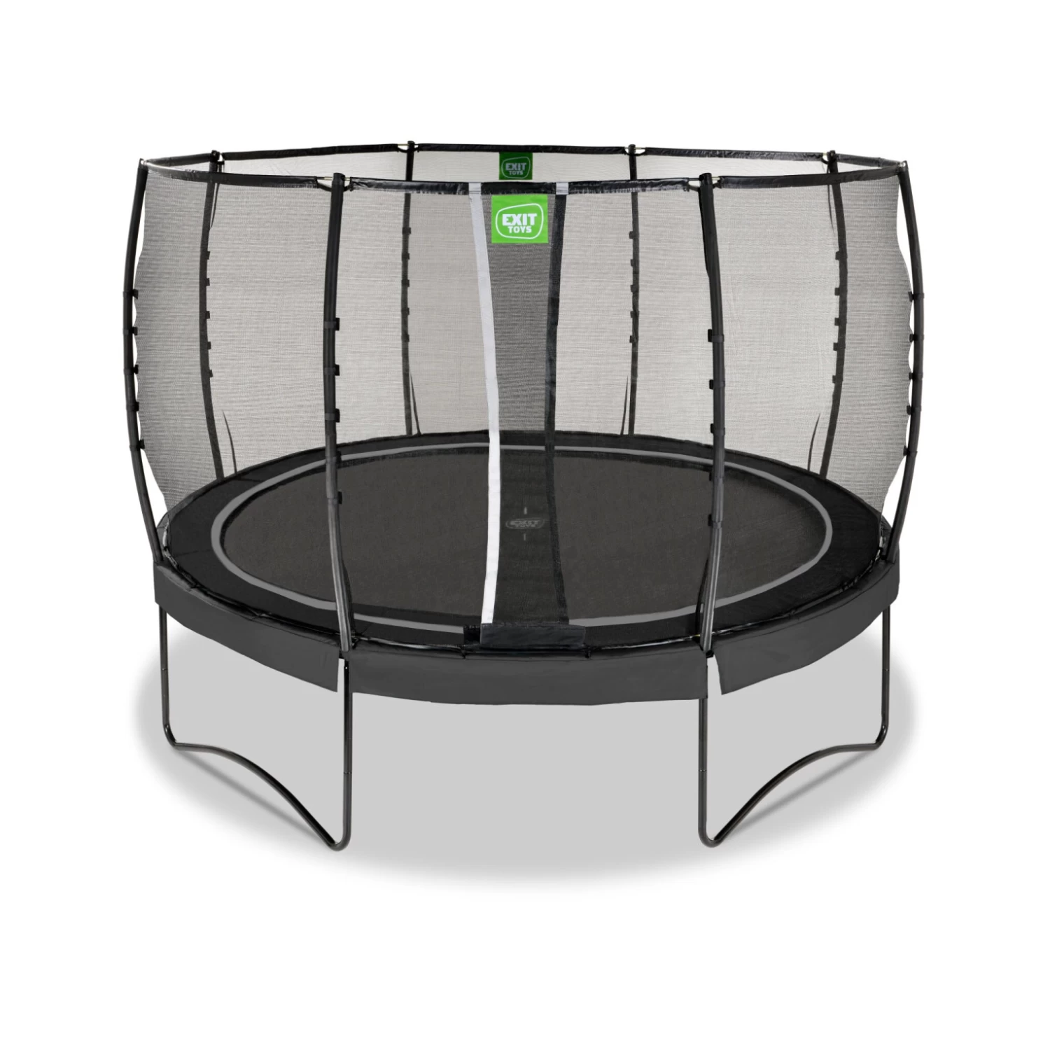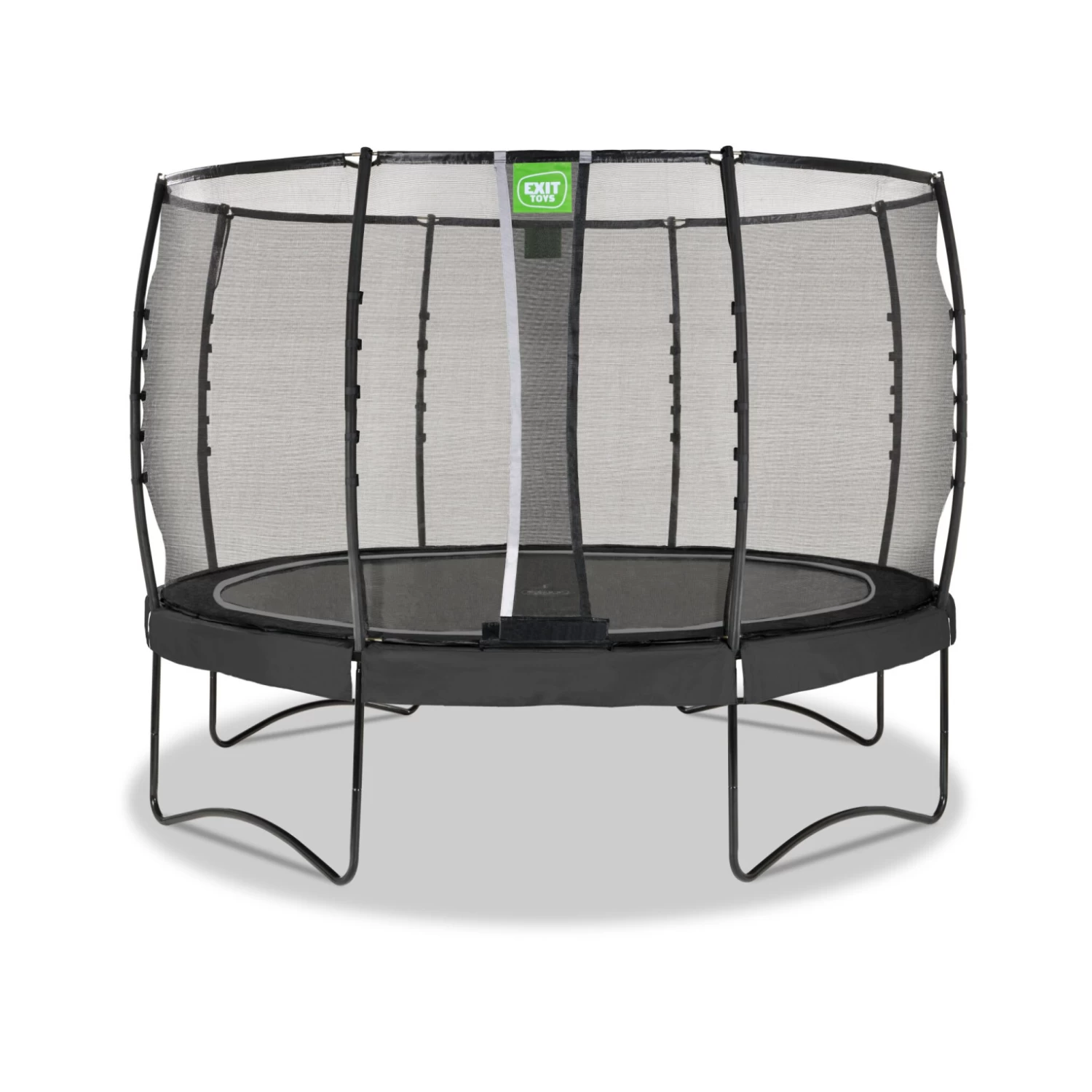 De EXIT Allure Premium trampoline is een trampoline met een beschermrand en een Premium veiligheidsnet. Dankzij het EXIT Foot Protection System (FPS), een net tussen het springdoek en de trampoline beschermrand, komen trampolinespringers nooit met hun voeten tussen de springveren. Het meegeleverde Premium veiligheidsnet heeft een overlappende ingang die automatisch sluit. Ook zijn de palen van het Premium veiligheidsnet bedekt met hoogwaardig XPE schuim.