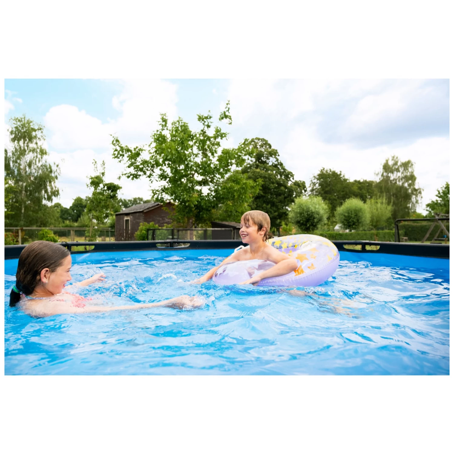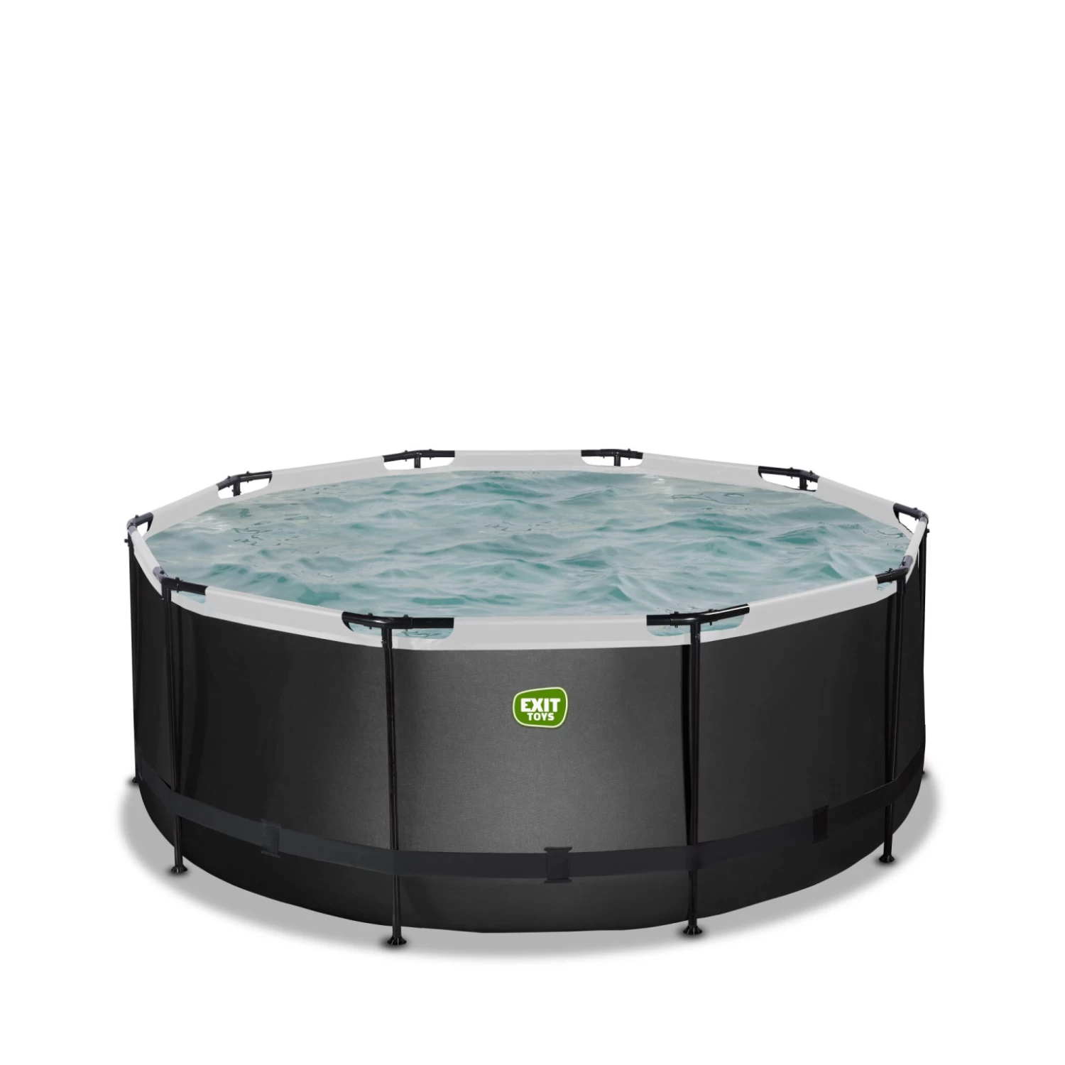 Het EXIT Black Leather zwembad ø360 x 122 cm is een rond frame zwembad met een zwarte leren print. Het zwembad is standaard voorzien van een zandfilterpomp en een zwembadtrap, waarmee je veilig het zwembad in en uit kunt stappen. Het EXIT Black Leather zwembad heeft een luxe uitstraling dankzij het unieke leerpatroon. Door de zwarte buitenkant en lichtgrijze binnenkant staat er een stijlvol en modern zwembad in de tuin. Het EXIT zwembad is uitgevoerd met sterke 3-laags wanden, van PVC en polyester.