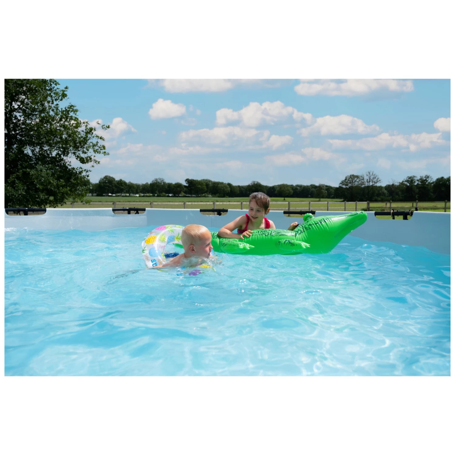 Het EXIT Stone zwembad ø450 x 122 cm is een rond grijskleurig frame zwembad. Het zwembad is standaard voorzien van een filterpomp en een zwembadtrap, waarmee je veilig het zwembad in en uit kunt stappen. Door de royale diameter van het zwembad is er genoeg ruimte om heerlijk op een luchtbed te dobberen. En wil je toch liever onder water zwemmen? Het EXIT Stone zwembad is maar liefst 122 centimeter diep waardoor je echt onder water kunt duiken.