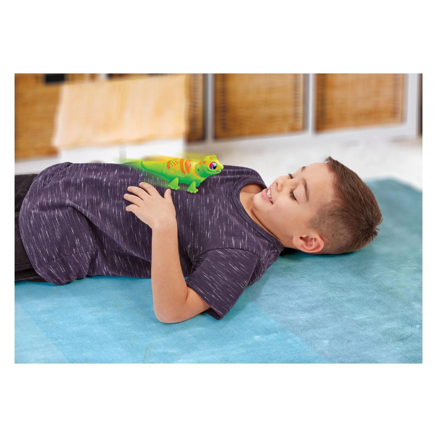 Dit is Get Along Gecko! Hij kan door zijn ogen die van kleur kunnen veranderen en de geluiden en bewegingen die hij maakt, zijn emoties aan je laten zien! Zo leer je je nieuwe vriend snel kennen. De Gecko heeft twee verschillende standen, de speelstand en de beweegstand, voor eindeloos speelplezier! Werkt op 2 AAA batterijen (niet inbegrepen).