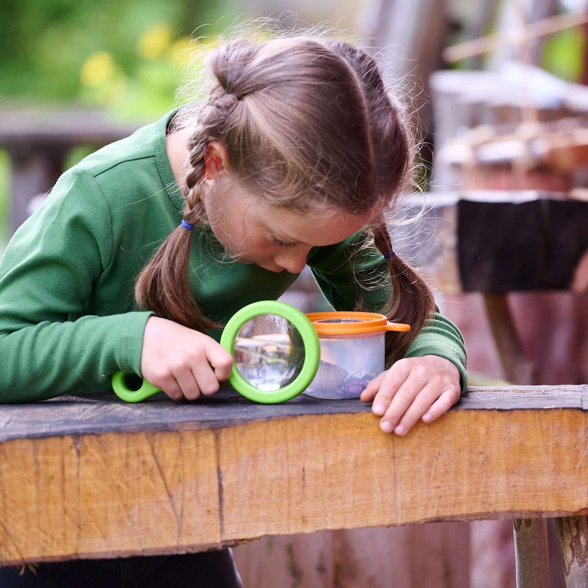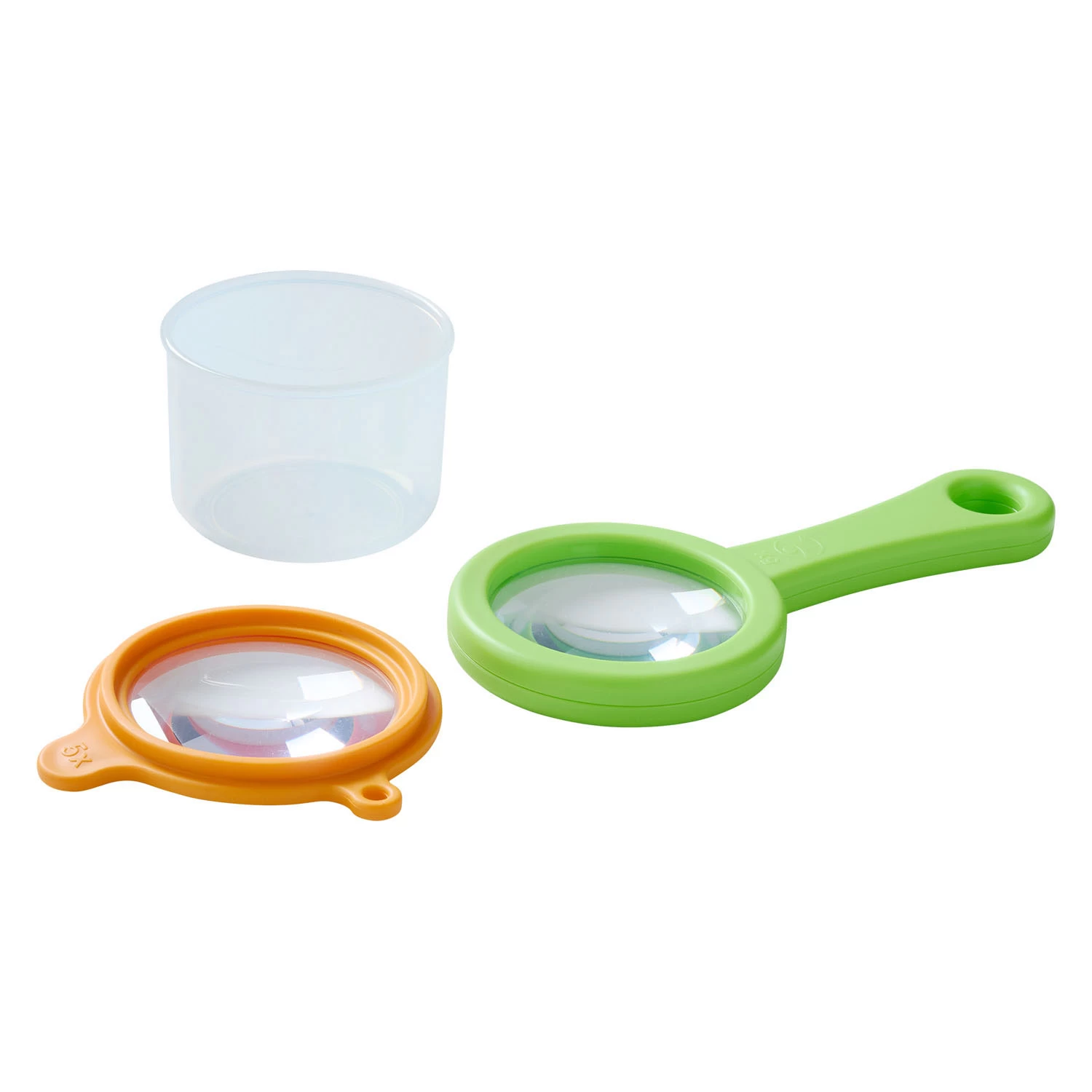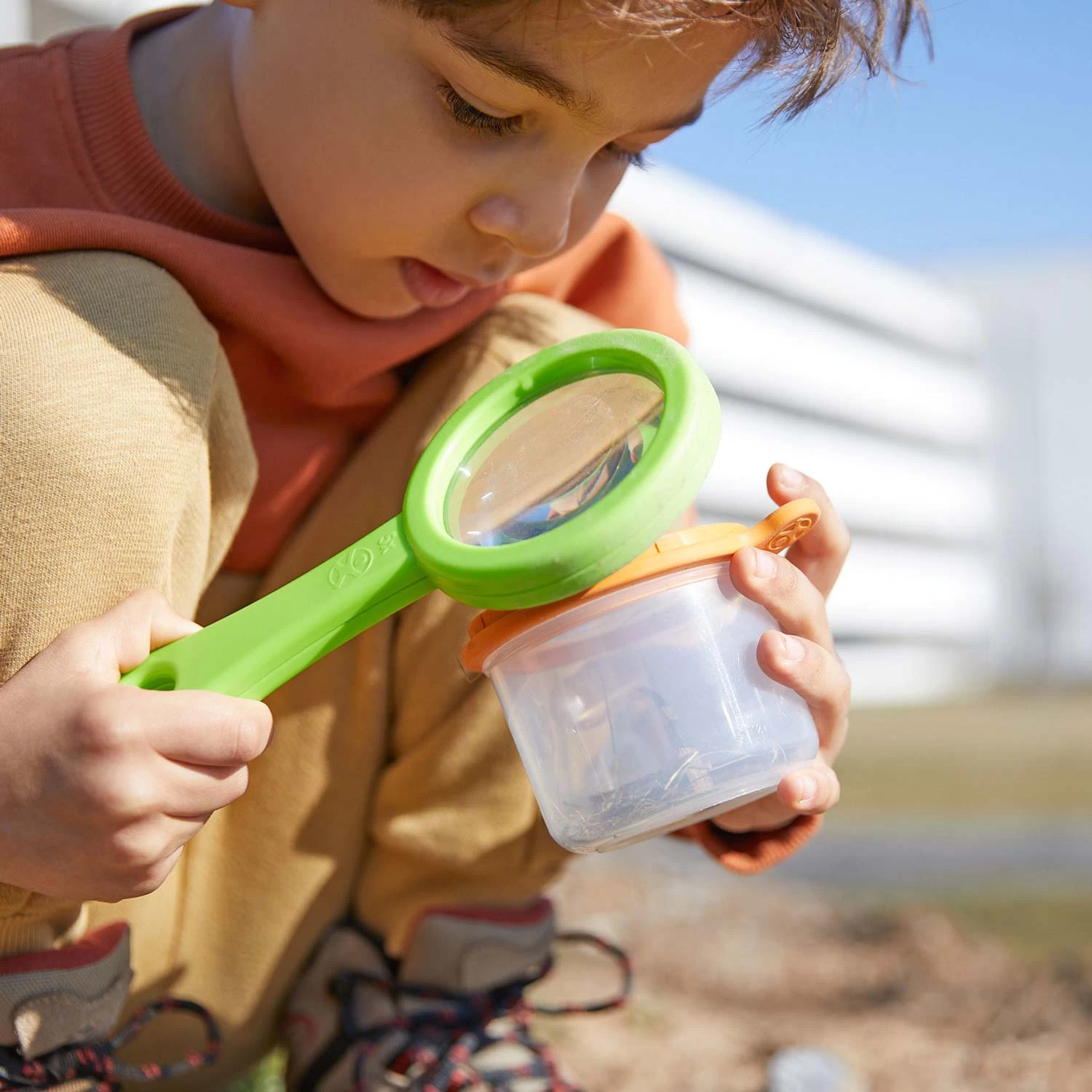 Dit hoort in de koffer van elke natuuronderzoeker: met de hoogwaardige Terra Kids 3-in-1 bekerloep hebben kleine natuurontdekkers meteen twee loepen en een beker met 5x en 10x vergroting. De dubbele loep van acryl is niet alleen een deksel, hij ligt ook perfect in de hand. Op die manier kunnen kleine ontdekkers bladeren, bloemen, kevers, slakken, enz. heel precies onder de loep nemen, bewonderen en observeren in de beker of in de vrije natuur. Niet vergeten: na uiterlijk 15 minuten moeten alle diertjes weer in hun natuurlijke omgeving worden vrijgelaten.