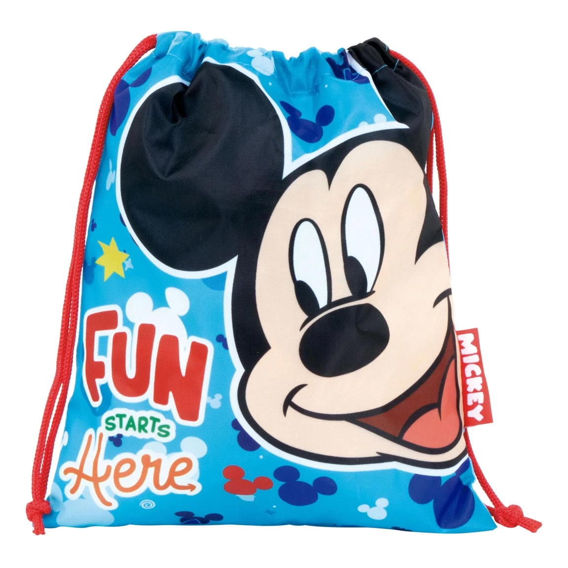Deze vrolijke Mickey Mouse-knikkerzak is groot genoeg om al jouw mooiste knikkers in te bewaren en mee te nemen. De knikkertas is blauw met aan de voorkant een print van Mickey en de Engelse quote ‘’Fun Starts Here’’. Met het trekkoord kun je de knikkerzak sluiten en dragen.