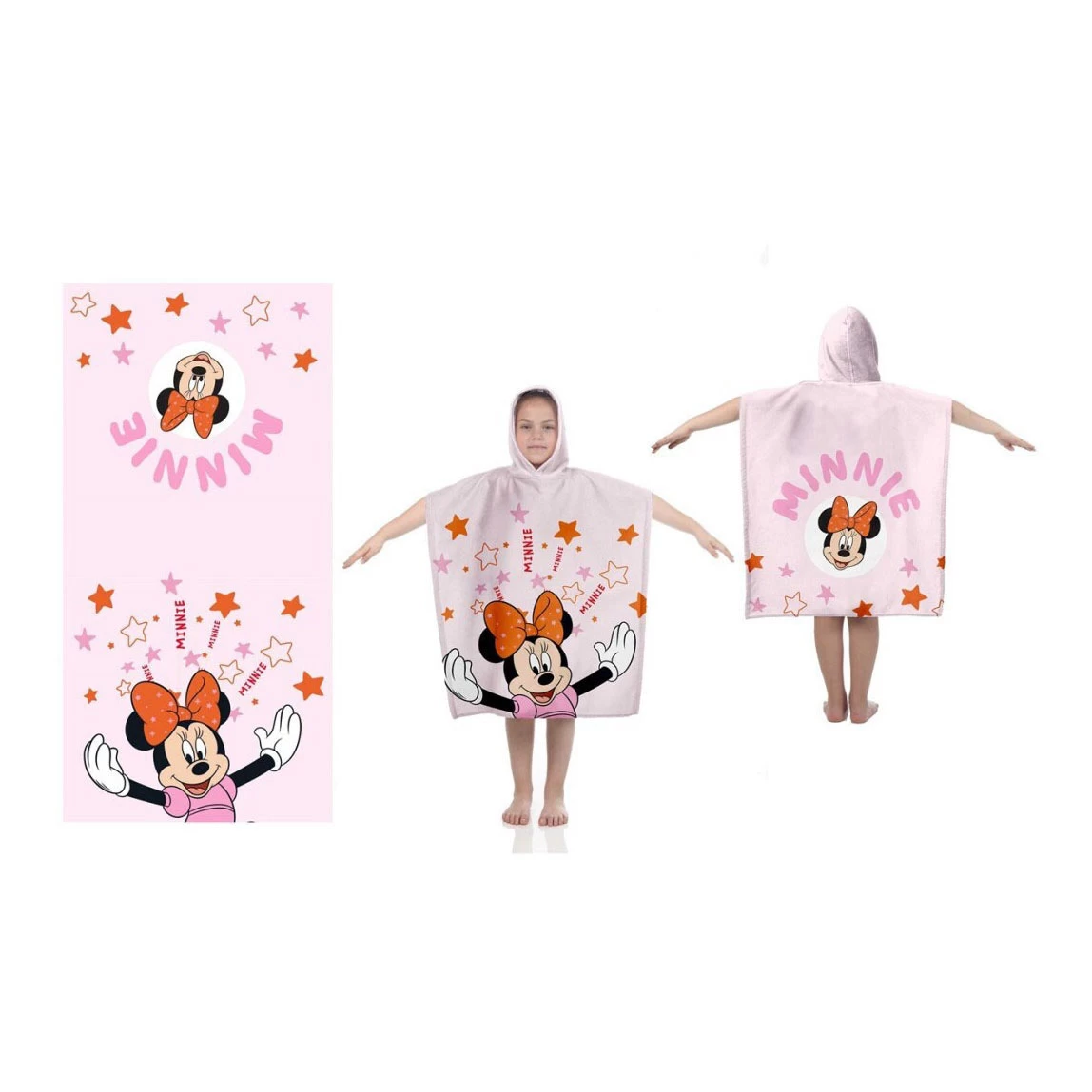 Heerlijk zachte poncho voor katoen om je kind mee te drogen na het zwemmen of douchen. De poncho is 60 x 120 centimeter groot (one size) en heeft een capuchon. Zo worden ook meteen de haren droog, terwijl je kind geen koude oren krijgt. Handig! De poncho is lichtroze en heeft een vrolijke afbeelding van Minnie Mouse. Geschikt voor in de wasmachine.