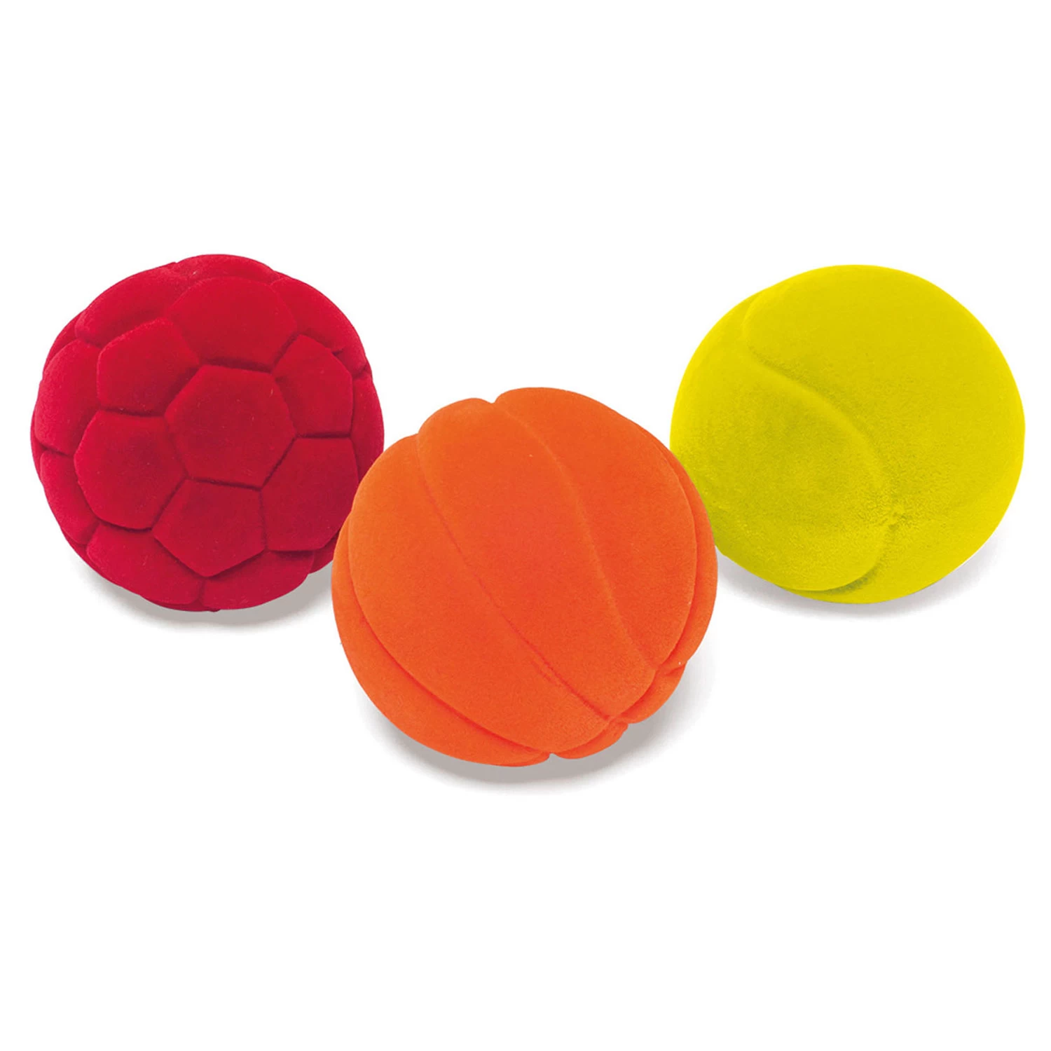 Deze Mini Sportballen van Rubbabu zijn heerlijk zacht en aaibaar. De ballen zijn gemaakt van natuurlijk rubberschuim waardoor ze veilig zijn voor elke leeftijd. De sportballen zijn voorzien van felle kleuren waar kleine kinderen dol op zijn! Rollend speelgoed daagt kinderen uit om te spelen en te bewegen. Daarnaast is het product eco vriendelijk en 100% biologisch afbreekbaar. De diameter van de balletjes is 7 centimeter.