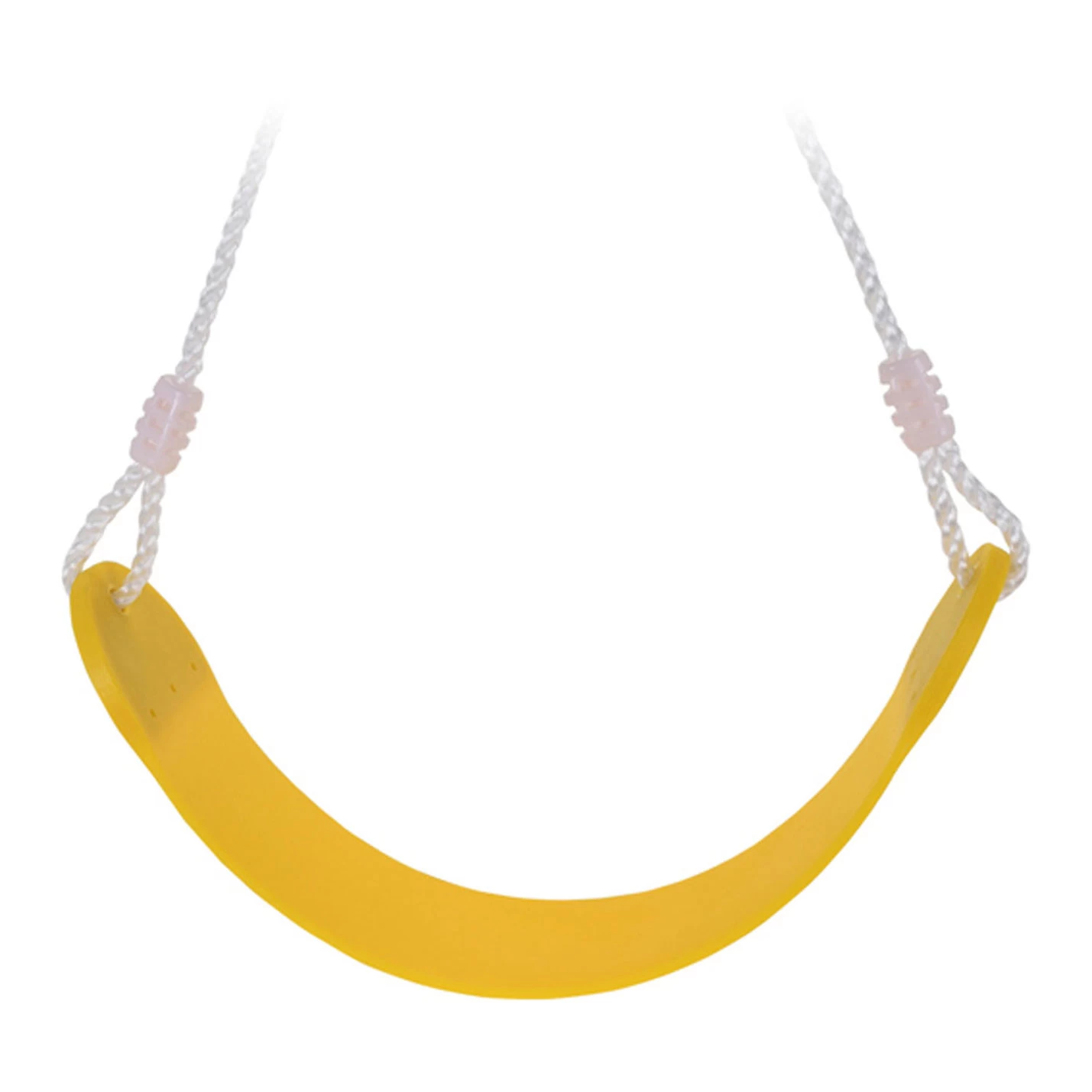 Hoger, hoger, hoogst! Met deze gele gekleurde schommel vlieg je hoog in de lucht! Het zitvlak is gemaakt van flexibel kunststof en zorgt hierdoor voor een fijne zithouding. Ook heeft deze schommel het voordeel dat na een regenbui het zitvlak makkelijk weer droog te krijgen is met een handdoek. De schommel is voorzien van stevig touw en wordt opgehangen aan 2 stevige metalen ringen.