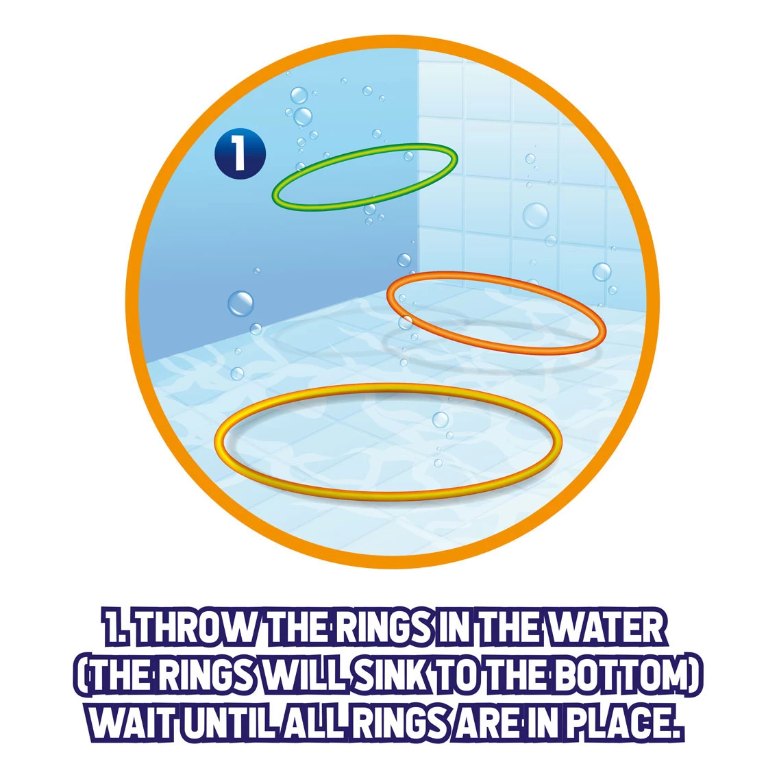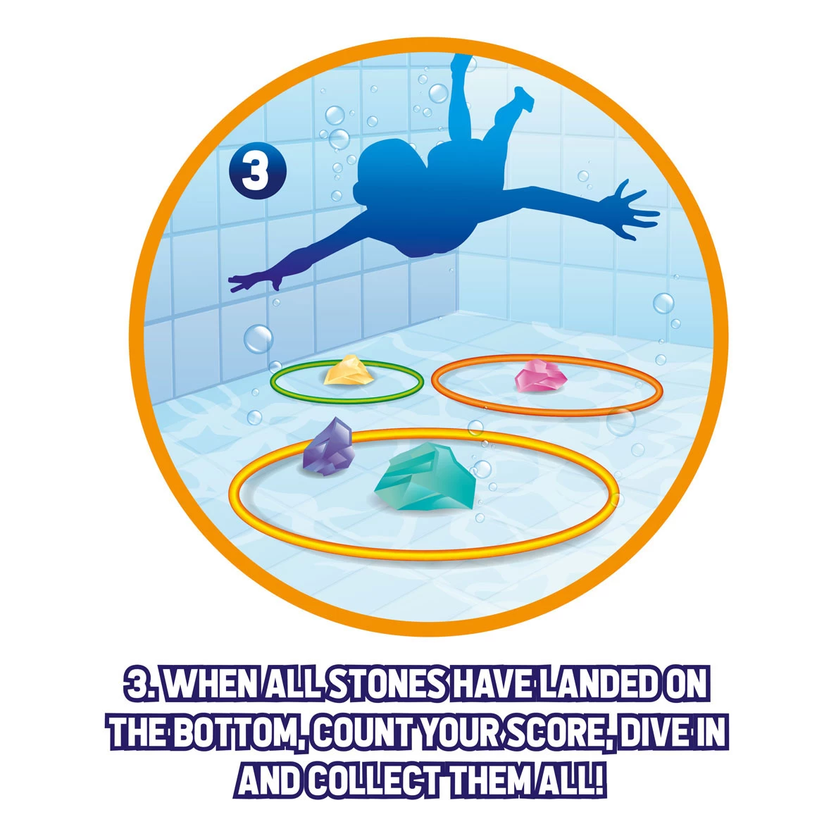 Leer duiken met dit ringwerpspel voor onder water! Gooi de ringen op de bodem van het zwembad en probeer vervolgens de edelstenen in de ringen te gooien. Duik het vervolgens om en om weer op. De ringen zijn in 3 verschillende formaten. Hoe kleiner de ring, hoe moeilijker het spel natuurlijk!