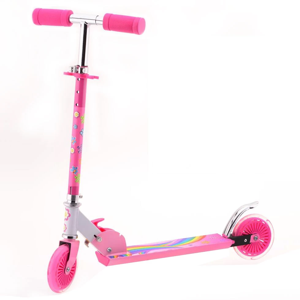 Sterke, inklapbare roze step vervaardigd uit staal en aluminium. Stuur in hoogte verstelbaar van 57 – 82 cm. Maximaal gewicht tot 50 kg.