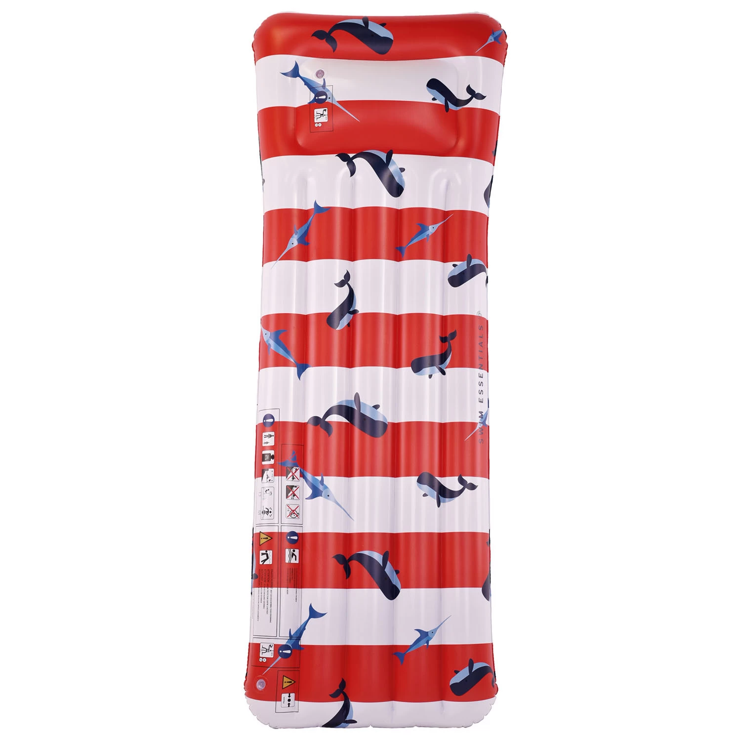 Swim Essentials Luxe Luchtbed in Rood-Wit uitvoering met Walvis-print. Het water luchtbed is hoger en breder dan normale luchtbedden, waardoor het comfort nog groter is! Gemaakt van duurzaam PVC, vrij van schadelijke stoffen. Maximale belastbaarheid 80 kg, geschikt voor kinderen vanaf 6 jaar. De verpakking is gemaakt van gerecycled karton. Wordt geleverd met een reparatiesetje voor nog langere levensduur.