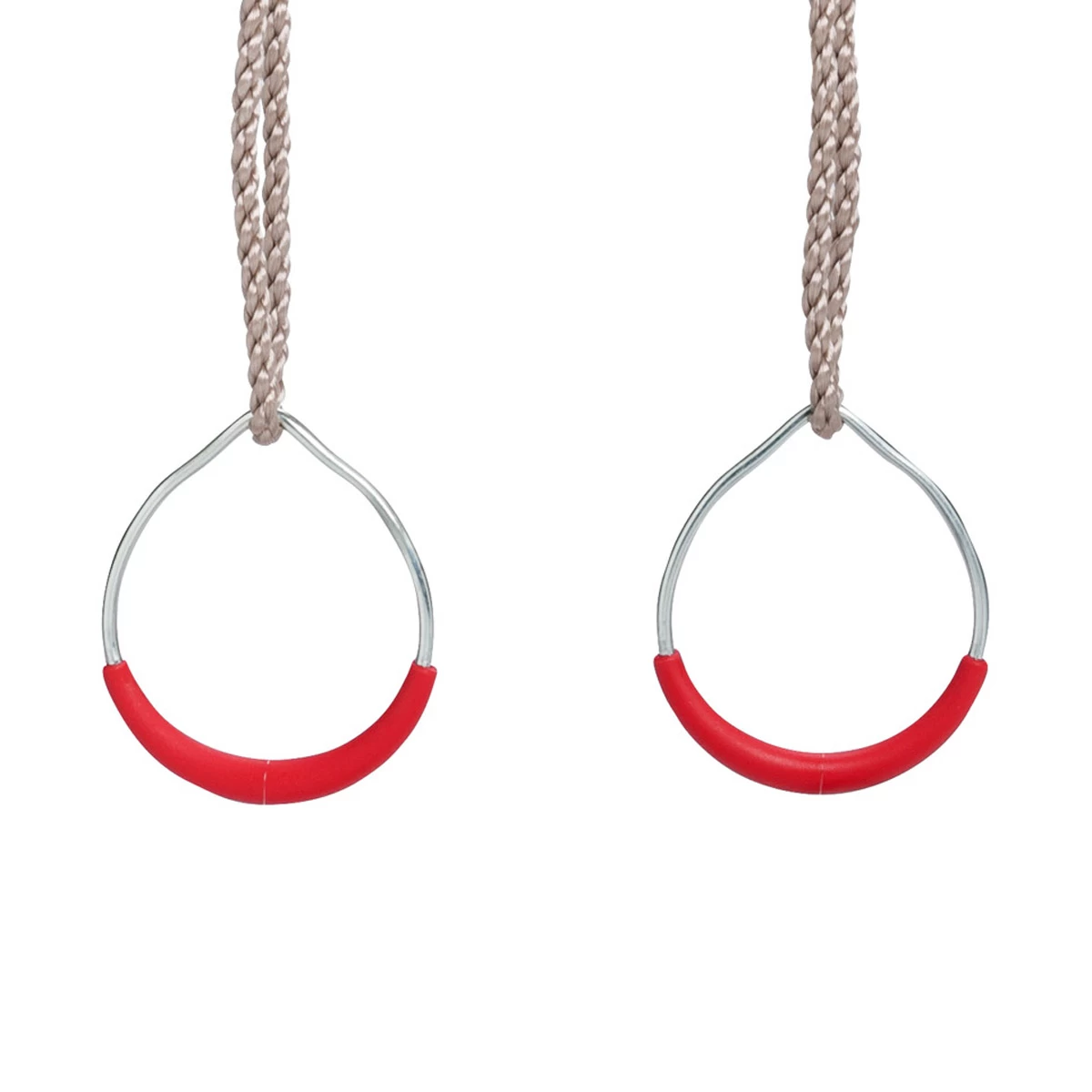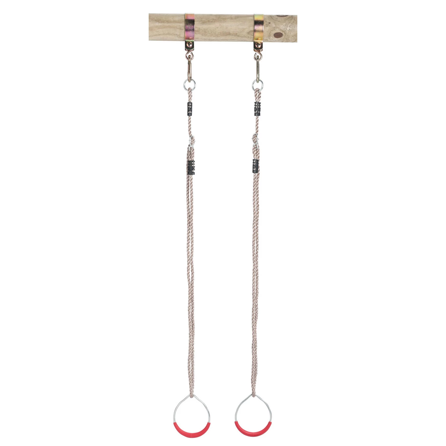 Turnringen zorgen voor veel speelplezier bij jonge acrobaatjes! Deze stevige metalen turnringen met kunststof handvat zijn in hoogte verstelbaar en geschikt voor kinderen vanaf 3 jaar. De turnringen zijn eenvoudig te monteren aan twee schommelhaken (niet inbegrepen).